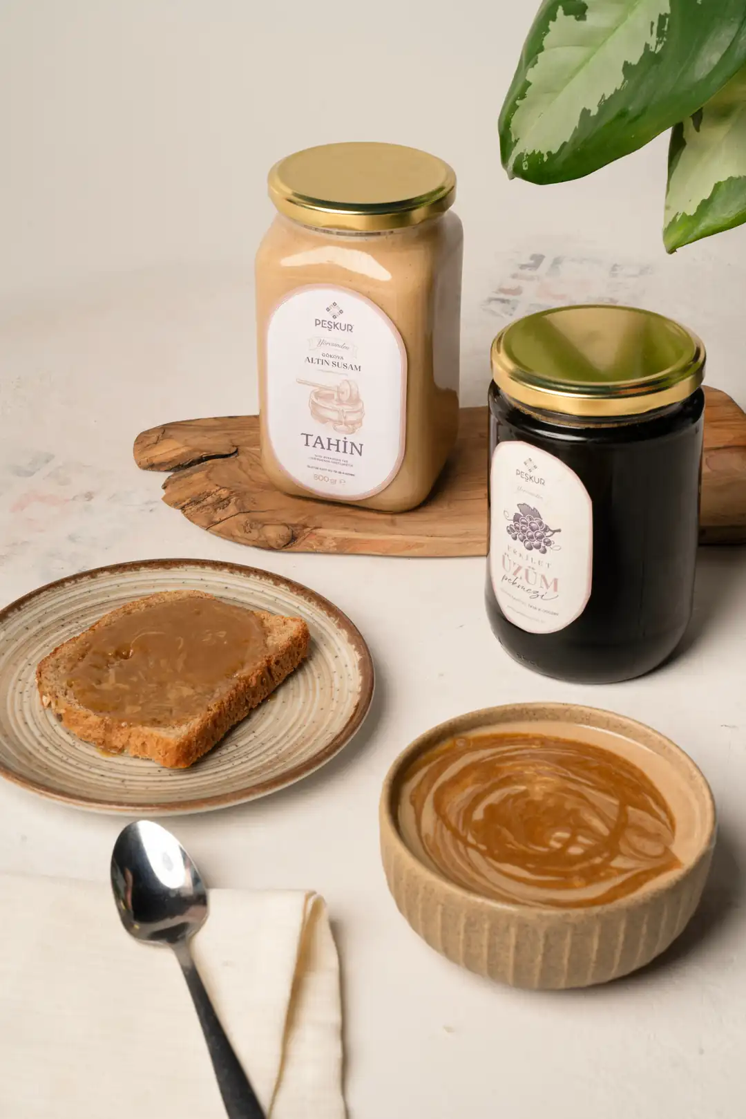 Peskur’un sunduğu yerli tahinler, tamamen yerli üretimle elde edilen susamlardan yapılmaktadır. Sitemizdeki tahinler, lezzetli ve besleyici özellikleriyle sofralarınızı zenginleştirirken, sağlığınıza da katkı sağlar. Peskur tahinleri, hem geleneksel hem de organik yöntemlerle üretilmiş olup, saf susam tadını en doğal şekilde sunmaktadır. Ürünlerimizde katkı maddesi veya kimyasal içerik bulunmaz, böylece hem lezzetli hem de sağlıklı bir seçim yapmış olursunuz. Peskur'un tahinleriyle, her öğünde sağlıklı bir lezzet keyfi yaşayın.